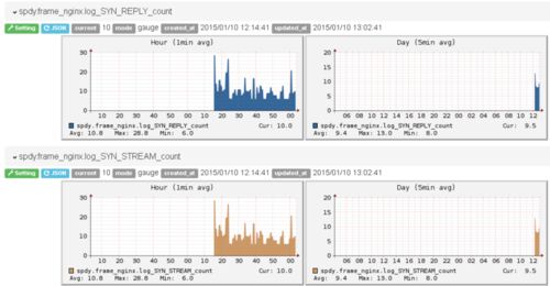 Webサーバであれば当然、各レスポンスコード毎にグラフ化して4xxがしきい値を超えた場合はアラートを投げたりすると思います。 その他にも各種グラフはサーバ運用する上で非常に有益なものになります。SPDYやHTTP/2でも同様だと考えられます。 今回は、簡単…